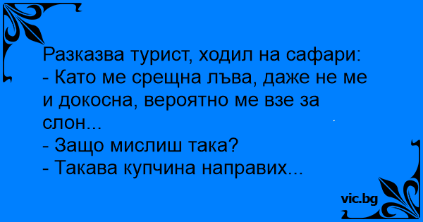- Като ме срещна лъва, даже не ме и докосна, вероятно ме взе за слон...