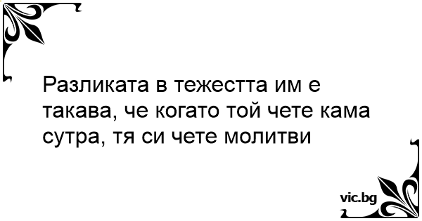 Разликата в тежестта им е такава, че когато той чете кама сутра, тя си чете молитви