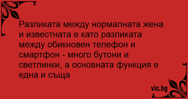 Разликата между нормалната жена и известната е като разликата между обикновен телефон и смартфон - много бутони и светлинки, а основната функция е една и съща