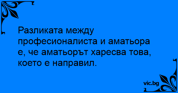 Разликата между професионалиста и аматьора е, че аматьорът харесва това, което е направил.