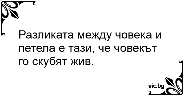 Разликата между човека и петела е тази, че човекът го скубят жив.