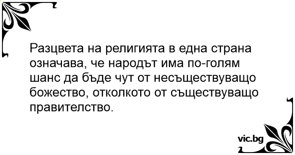 Разцвета на религията в една страна означава, че народът има по-голям шанс да бъде чут от несъществуващо божество, отколкото от съществуващо правителство.