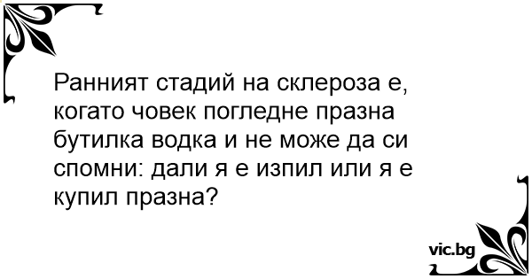 Ранният стадий на склероза е, когато човек погледне празна бутилка водка и не може да си спомни: дали я е изпил или я е купил празна?