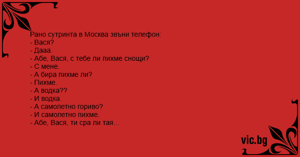 - Абе, Вася, ти сра ли тая сутрин?
