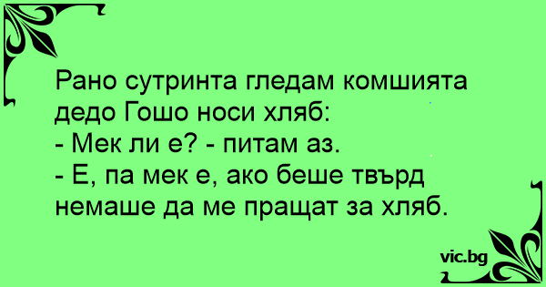 - Е, па мек е, ако беше твърд немаше да ме пращат за хляб.