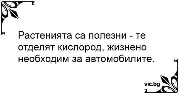 Растенията са полезни - те отделят кислород, жизнено необходим за автомобилите.