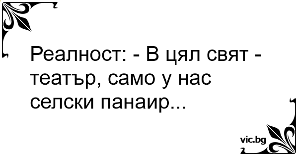 Реалност: - В цял свят - театър, само у нас селски панаир...