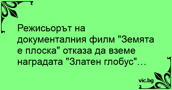 Режисьорът на документалния филм "Земята е плоска" отказа да вземе наградата "Златен глобус"…