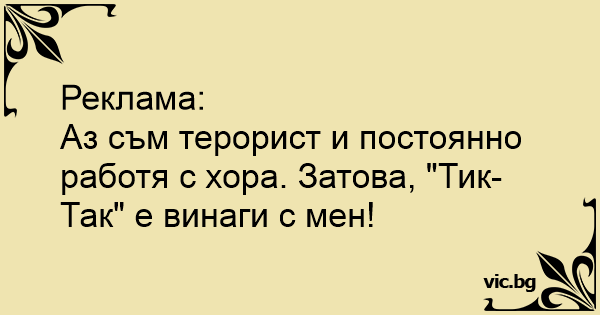 Аз съм терорист и постоянно работя с хора. Затова, "Тик-Так" е винаги с мен!