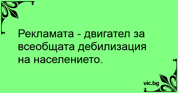 Рекламата - двигател за всеобщата дебилизация на населението.