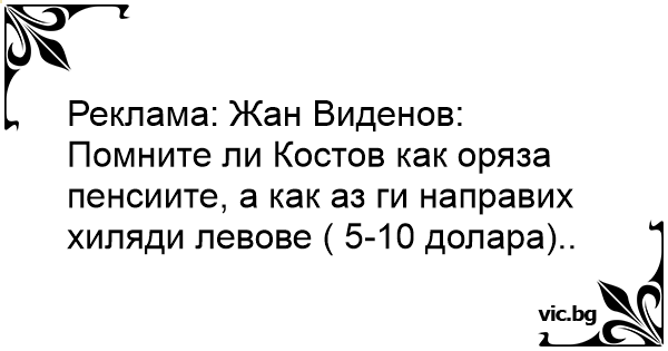 Помните ли Костов как оряза пенсиите, а как аз ги направих хиляди левове ( 5-10 долара)..