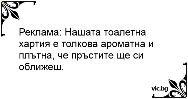 Реклама: Нашата тоалетна хартия е толкова ароматна и плътна, че пръстите ще си оближеш.