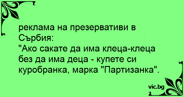 "Ако сакате да има клеца-клеца без да има деца - купете си куробранка, марка "Партизанка".