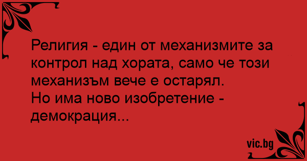 Религия - един от механизмите за контрол над хората, само че този механизъм вече е остарял.