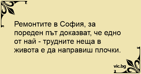 Ремонтите в София, за пореден път доказват, че едно от най - трудните неща в живота е да направиш плочки.