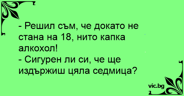 - Решил съм, че докато не стана на 18, нито капка алкохол!