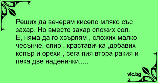 Реших да вечерям кисело мляко със захар. Но вместо захар сложих сол.