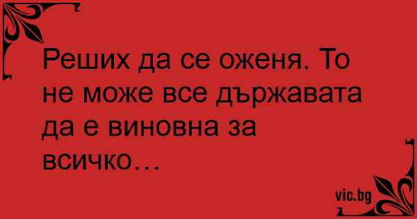 Реших да се оженя. То не може все държавата да е виновна за всичко…
