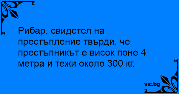 Рибар, свидетел на престъпление твърди, че престъпникът е висок поне 4 метра и тежи около 300 кг.