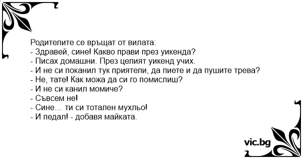 • Вицове от Facebook от нашата страница https://www.facebook.com/www.vic.bg