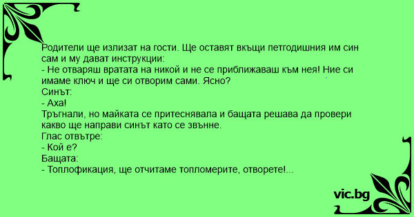 • Вицове от Facebook от нашата страница https://www.facebook.com/www.vic.bg
