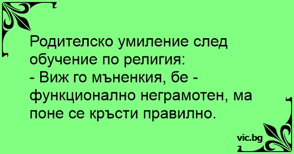- Виж го мънeнкия, бе - функционално неграмотен, ма поне се кръсти правилно.