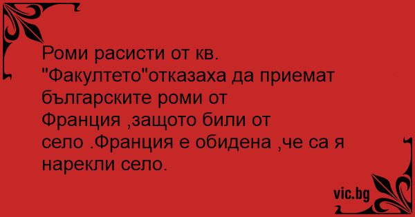 Роми расисти от кв. "Факултето"отказаха да приемат българските роми от Франция ,защото били от село .Франция е обидена ,че са я нарекли село.