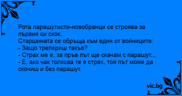 - Е, ако чак толкова те е страх, тоя път може да скочиш и без парашут.