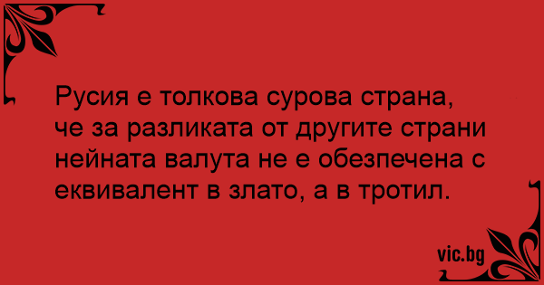 Русия е толкова сурова страна, че за разликата от другите страни нейната валута не е обезпечена с еквивалент в злато, а в тротил.