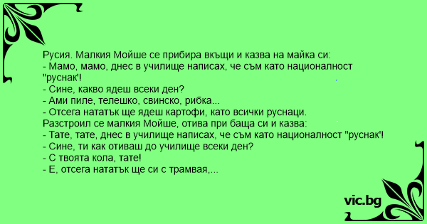 - Тате, тате, днес в училище написах, че съм като националност "руснак'!