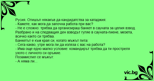 Русия. Отишъл някакъв да кандидатства за катаджия: