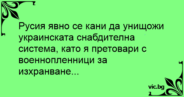 Русия явно се кани да унищожи украинската снабдителна система, като я претовари с военнопленници за изхранване...