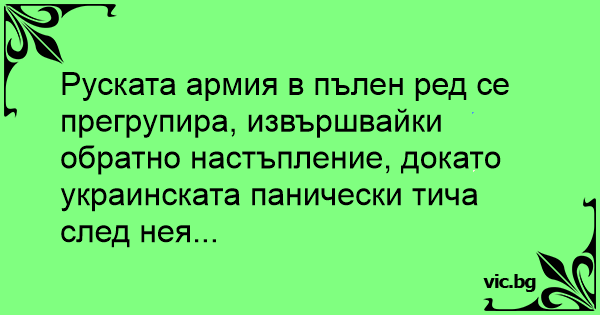 Руската армия в пълен ред се прегрупира, извършвайки обратно настъпление, докато украинската панически тича след нея...