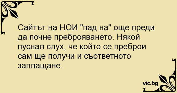 Сайтът на НОИ "пад на" още преди да почне преброяването. Някой пуснал слух, че който се преброи сам ще получи и съответното заплащане.