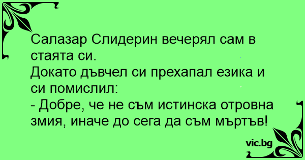 - Добре, че не съм истинска отровна змия, иначе до сега да съм мъртъв!
