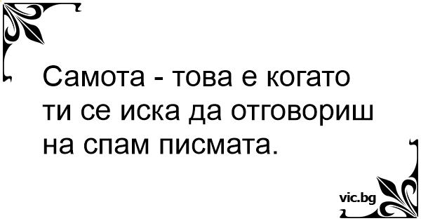 Самота - това е когато ти се иска да отговориш на спам писмата.