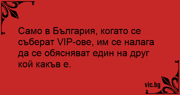 Само в България, когато се съберат VIP-ове, им се налага да се обясняват един на друг кой какъв е.<br />