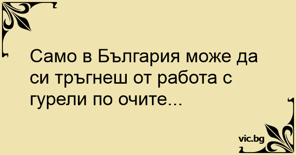 Само в България може да си тръгнеш от работа с гурели по очите...