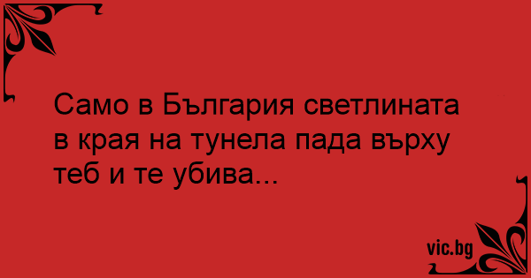 Само в България светлината в края на тунела пада върху теб и те убива...