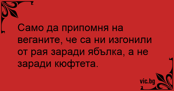 Само да припомня на веганите, че са ни изгонили от рая заради ябълка, а не заради кюфтета.