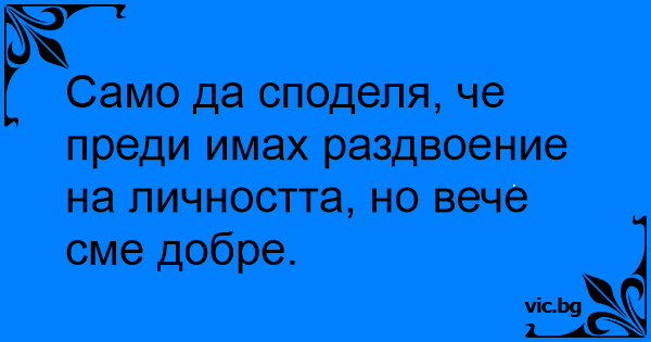 Само да споделя, че преди имах раздвоение на личността, но вече сме добре.