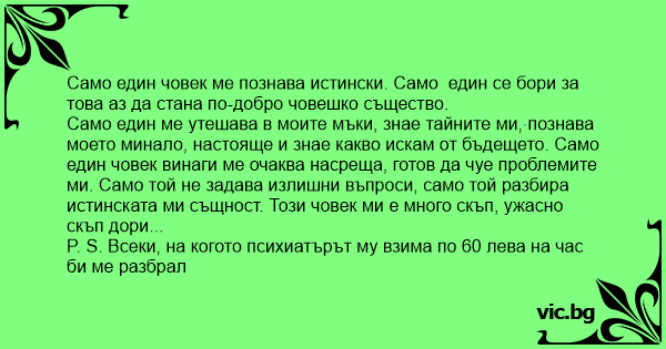 P. S. Всеки, на когото психиатърът му взима по 60 лева на час би ме разбрал