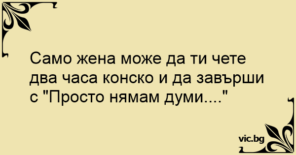 Само жена може да ти чете два часа конско и да завърши с "Просто нямам думи...."