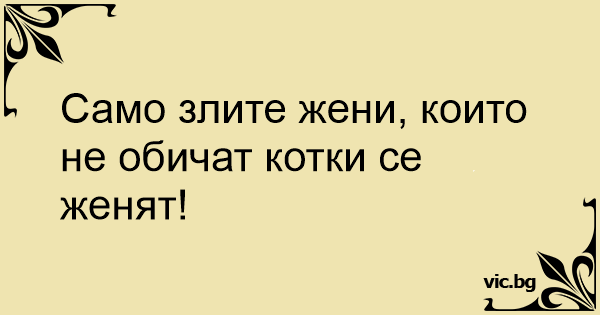 Само злите жени, които не обичат котки се женят!