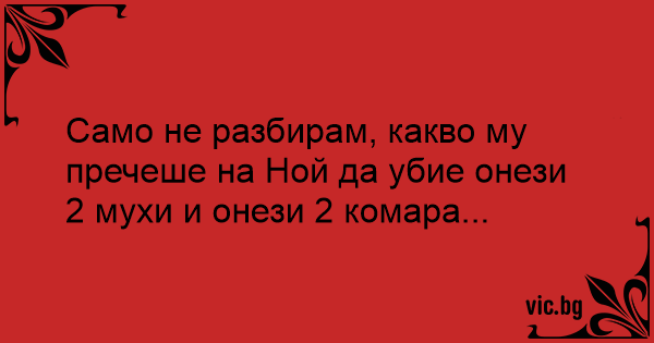 Само не разбирам, какво му пречеше на Ной да убие онези 2 мухи и онези 2 комара...