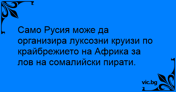 Само Русия може да организира луксозни круизи по крайбрежието на Африка за лов на сомалийски пирати.