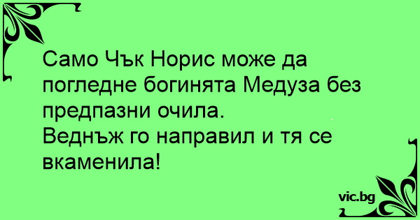 Само Чък Норис може да погледне богинята Медуза без предпазни очила.