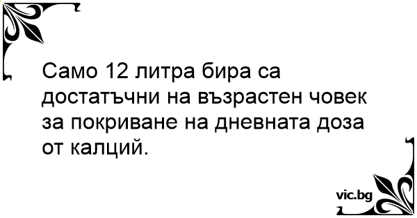Само 12 литра бира са достатъчни на възрастен човек за покриване на дневната доза от калций.