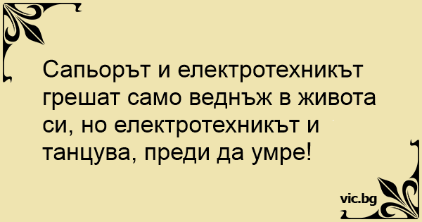 Сапьорът и електротехникът грешат само веднъж в живота си, но електротехникът и танцува, преди да умре!
