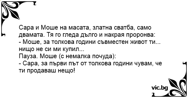 - Моше, за толкова години съвместен живот ти... нищо не си ми купил...